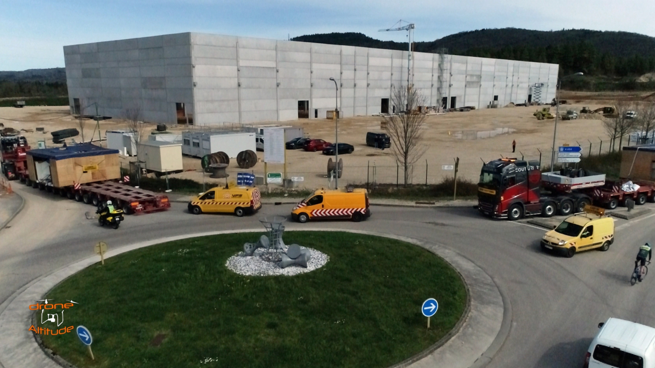 -Arrivée par camions spéciaux 2 éléments de la plus grosse presse du monde